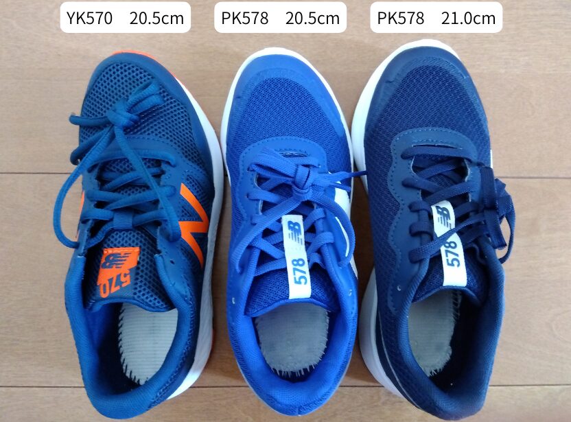 どちらもシューレース(紐)タイプの「578」シリーズで、デザイン・素材・履き心地などの仕様は共通とのことでした。違いがあるのは、サイズ展開(対象年齢)です。